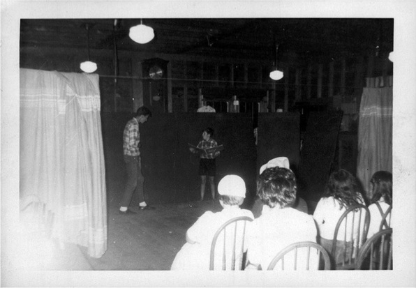 © Laura Grams 1984Myrrh Woofenden, Tobin Grams (in back), Emily Woofenden, Mike Woofenden, Ben Grams (standing in front, top photo only), Joshua Grams (standing in back), Jason Woofenden, Anna Woofenden, Rebekah Simons.
