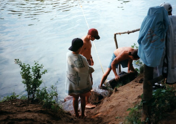 © FNCA 1960Notice that the float line not only goes across the river, but goes upstream, too. This was to demark the shallow water from the deeper. Non-swimmers weren't allowed to cross that upstream line into the deeper water.