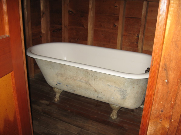 2. The old ice door is on the outdoor wall of the walk-in fridge on the kitchen porch in front of the Goddard Annex.