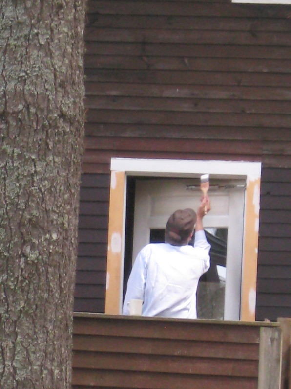 13. Herb Ziegler on the kitchen porch painting the doorframe of the Goddard Annex.