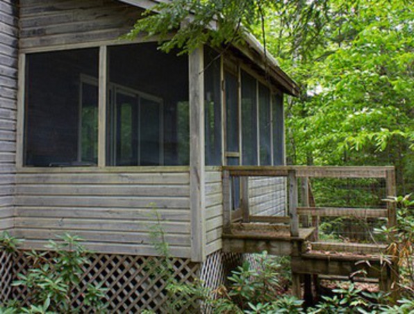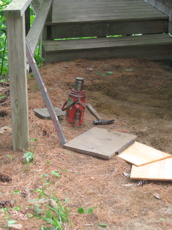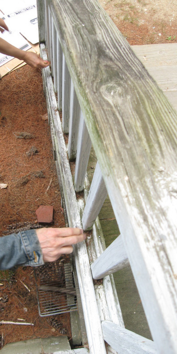 18. The Main Building porch railing on the steps towards the driveway on the side facing the kitchen.