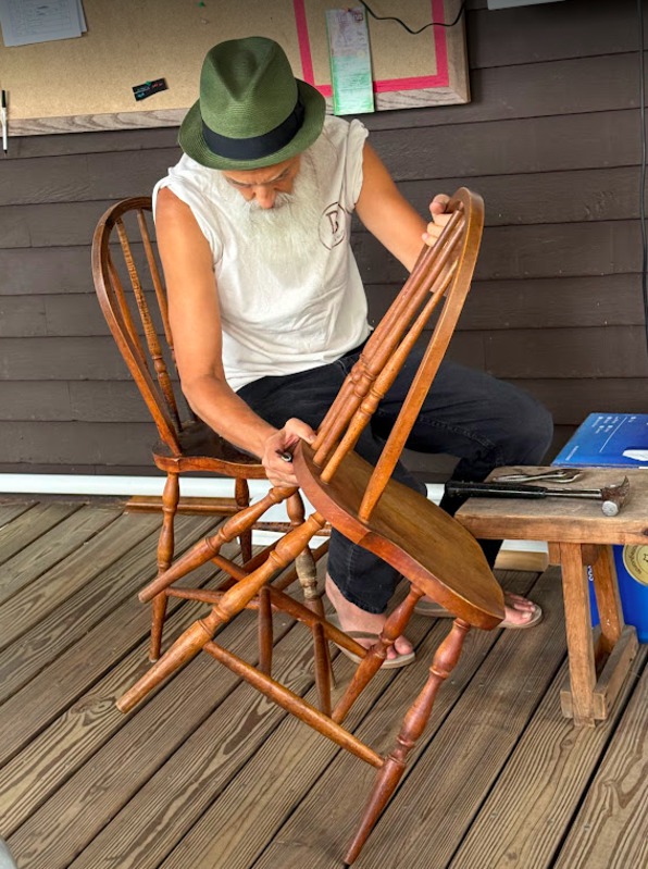 These are the only two known photos of the old end of the Kitchen before the Goddard Annex was added. That's George Dole up on the roof in both photos, and John Perry in the upper photo painting the door frame on the porch below. That door is the same door that goes into the Kitchen next to the walk-in fridge today. The upper window on the left is still there, too.